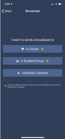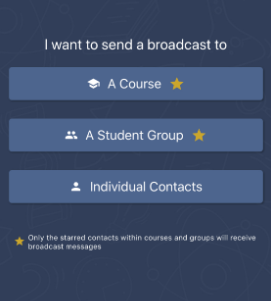 You can choose a Course, Group, or Contacts to send your broadcast. Notice the line about only going to preferred contacts. Those are the ones with a STAR by their name.