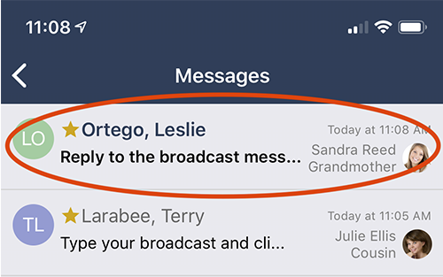 If someone replies to your broadcast message, you will be able to see the replies under 'Messages'. Replies go 1:1 and show in bold.