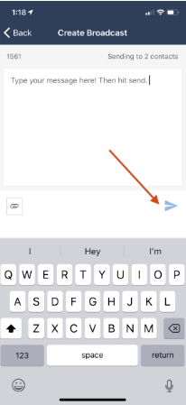 Create a new Broadcast Message by clicking Broadcast on the bottom of the screen and then the + sign in the upper right of the screen.